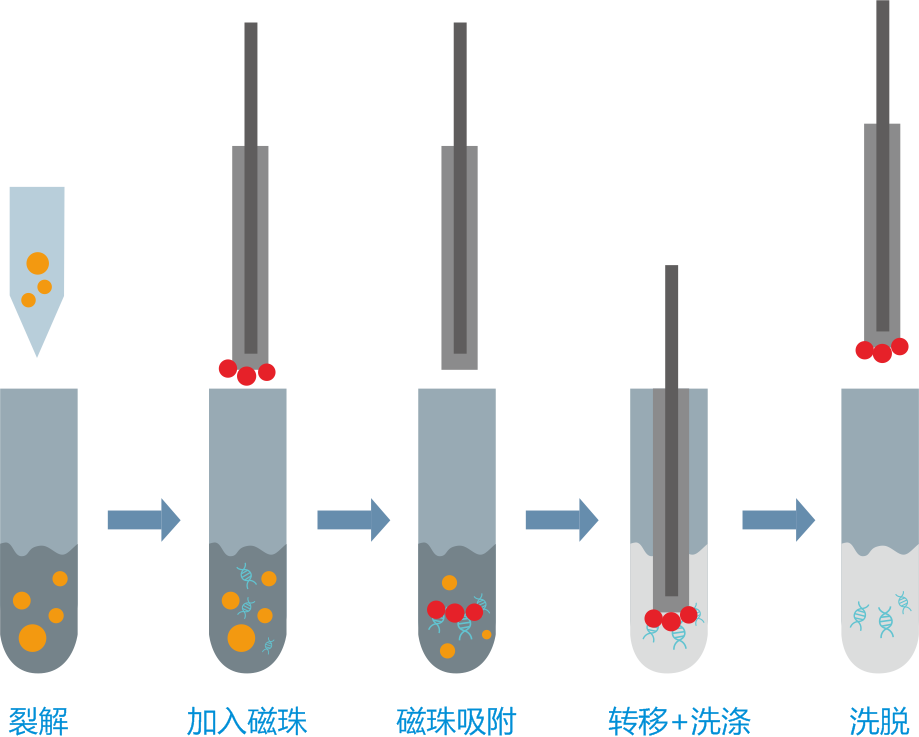 至此,完整的核酸提取流程就結束了,通過(guò)流程的清晰化,能夠更好地優(yōu)化試劑盒-儀器之間的磨合,縮短磨合時(shí)間,節約時(shí)間、人力與經(jīng)濟成本。