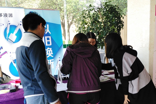 2016年3月28日—3月31日,2016年3月28日—3月31日,寶予德(中國)攜手代理商在武漢四所著(zhù)名高校舉辦“普惠科技,大行德廣”魅力校園行的第二站。寶予德一直致力于與終端用戶(hù)的互動(dòng),動(dòng)員各區域走進(jìn)高校,聆聽(tīng)用戶(hù)心聲,為用戶(hù)答疑解難?;顒?dòng)現場(chǎng)寶予德工作人員講解移液器原理和操作注意事項,還有線(xiàn)下線(xiàn)上有獎互動(dòng)游戲,吸引了眾多科研一線(xiàn)的可愛(ài)同學(xué)們參與,現場(chǎng)熱鬧非凡。