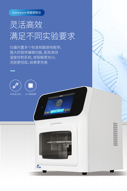 導讀自去年爆發(fā)非洲豬瘟疫情以來(lái),全國各地發(fā)生了近百起豬瘟疫情,豬場(chǎng)養殖戶(hù)損失慘重,人心惶惶。在各級政府和科研力量的輔助下,整體疫情發(fā)生勢頭逐漸平緩,但由于病毒有較強的潛伏期,尚未研發(fā)出有效疫苗,形式依然嚴峻,不可掉以輕心。 目前病原檢測可通過(guò)雙抗夾心Elisa、PCR、熒光定量PCR等檢測方法; 而核酸提取方法會(huì )影響PCR產(chǎn)物效率,跟隨小寶來(lái)看看不同核酸提取方法有哪些差異吧。柱離心法原理是柱由特殊硅基質(zhì)吸附材料構成,可特異性結合DNA,其余蛋白質(zhì)等雜質(zhì)因不被吸附而去除了,過(guò)程中需與離心機配合使用,提取得到的核酸純度有一定保障,但耗樣量較大,反復工作對大通量檢測不友好。磁珠吸附法磁珠吸附法又分為磁棒法和抽吸法,前者根據利用具有磁性且對核酸特異性吸附的磁珠的轉移控制提取進(jìn)程;后者則是通過(guò)添加或抽取液體,由于在不同步驟轉換中,抽取操作需要非常謹慎,不然試管內的裂解液或者緩沖液殘留,存在核酸純度不高的風(fēng)險。磁棒法具備較強的優(yōu)勢,可將豬的組織樣本經(jīng)研磨后,離心取上清液;血液經(jīng)離心后取血漿;口腔或肛拭子加入生理鹽水經(jīng)漩渦振蕩、離心后取上清液,用于提取純化核酸。相較于其他同檔次品牌,寶予德Gene Pure核酸提取儀具備10英寸更大觸摸屏;加熱裂解、洗脫溫度可從室溫~120℃,提高其效率;進(jìn)口步進(jìn)電機確保智能運動(dòng),性?xún)r(jià)比高!