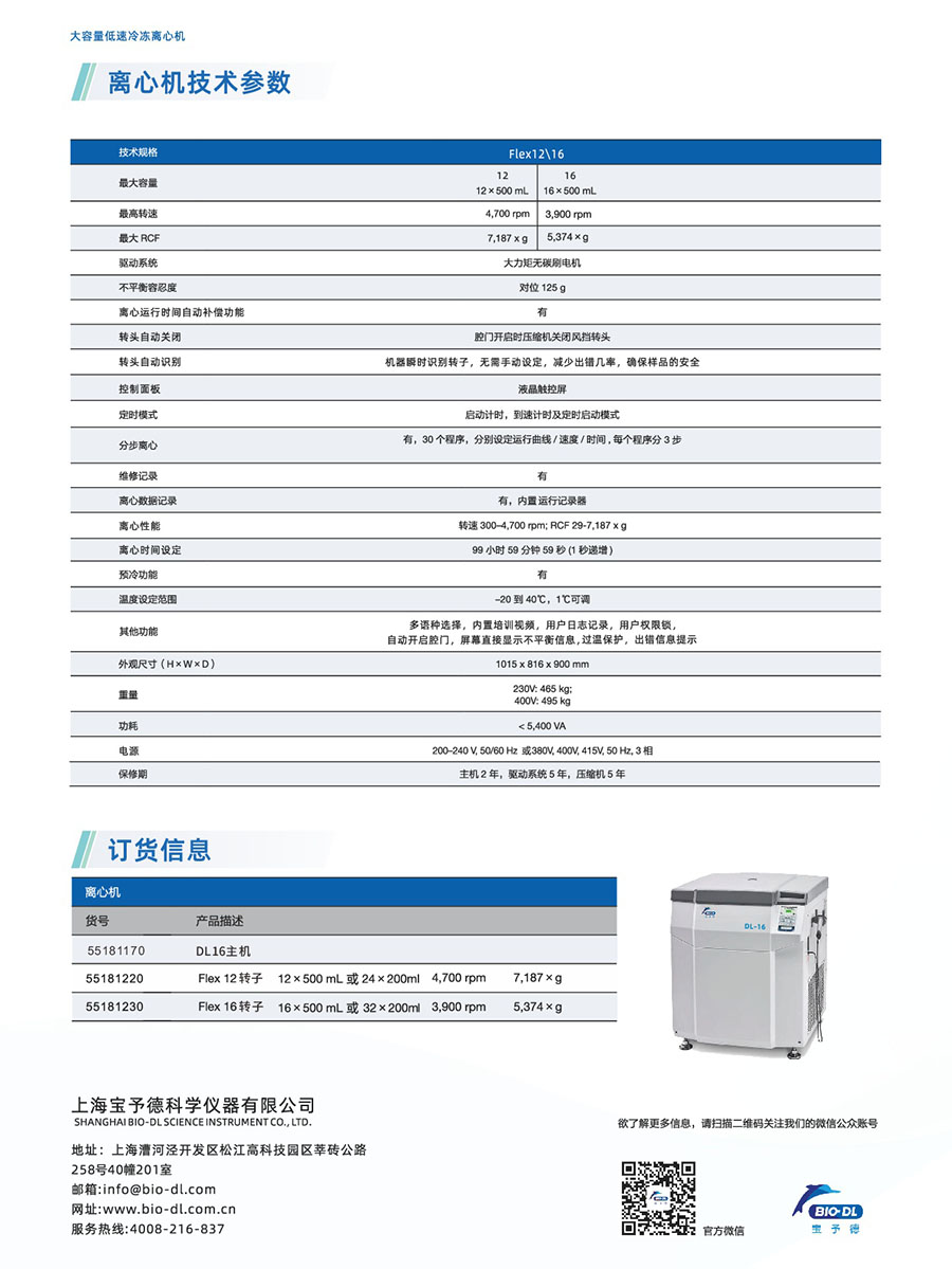DL16大容量低速冷凍離心機