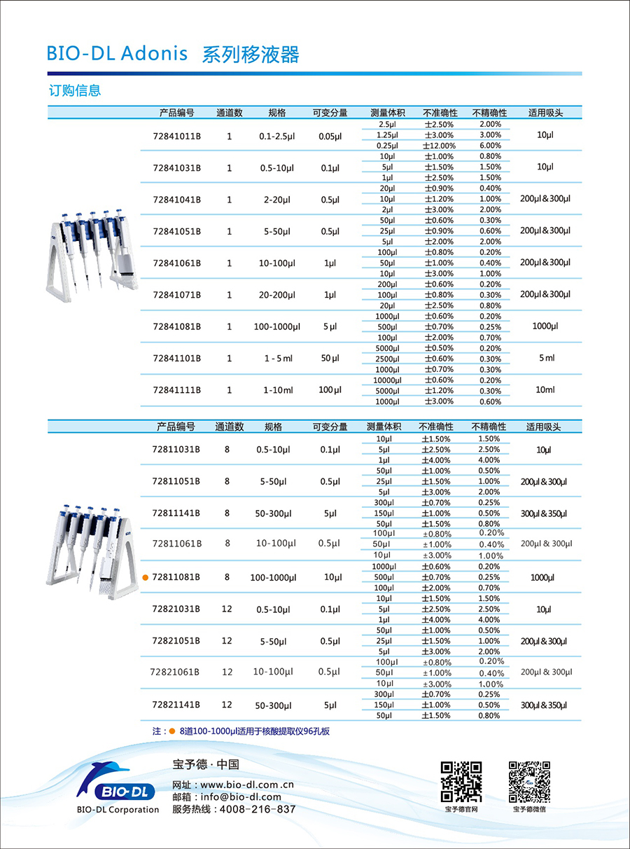 Adnios 100-1000μl 8道核酸提取專(zhuān)用移液器